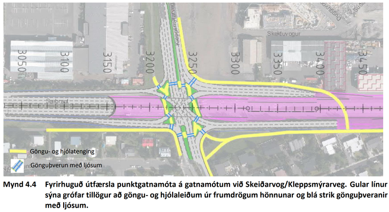 „Sá valkostur um útfærslu, sérstaklega gatnamót Skeiðarvogs og Sæbrautar, sem skilgreindur er í matsáætlun virðist ekki falla vel að þessum markmiðum og mikilvægt er að mótuð verði önnur útfærsla sem verður til samanburðar í umhverfismatinu, þar sem gert er ráð fyrir umfangsminni gatnamótum,“ segir í umsögn skipulagsfulltrúa.