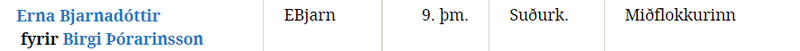 Á vef Alþingis má í dag sjá á lista yfir sitjandi aðal- og varaþingmenn að Erna situr á þingi fyrir Miðflokkinn, en ekki Sjálfstæðisflokkinn.