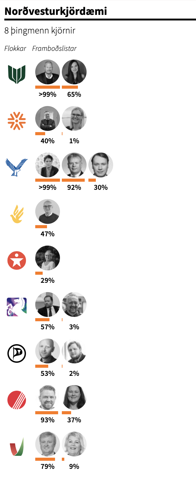 Hér að neðan má sjá lokaþingsætaspá Kjarnans og Baldurs Héðinssonar fyrir Norðvesturkjördæmi.