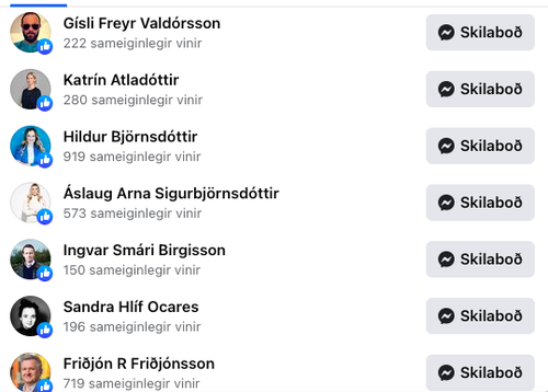 Á meðal þeirra sem líka við þá færslu er Hildur, borgarfulltrúinn Katrín Atladóttir og Áslaug Arna Sigurbjörnsdóttir, vísinda-, iðnaðar- og nýsköpunarráðherra. Á þeim lista má einnig finna Söndru Hlíf Ocares, sem orðuð hafði verið við framboð í opnu prófkjöri, Gísla Frey Valdórsson, ráðgjafa hjá KOM, og Friðjón R. Friðjónsson, einn eigenda KOM og varaþingmanns Sjálfstæðisflokksins.