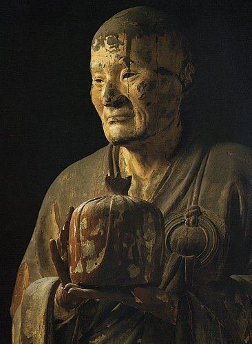 Mynd með þættinum sýnir styttu af helgimanninum Muchaku sem er talið eitt af helstu meistaraverkum Unkei.