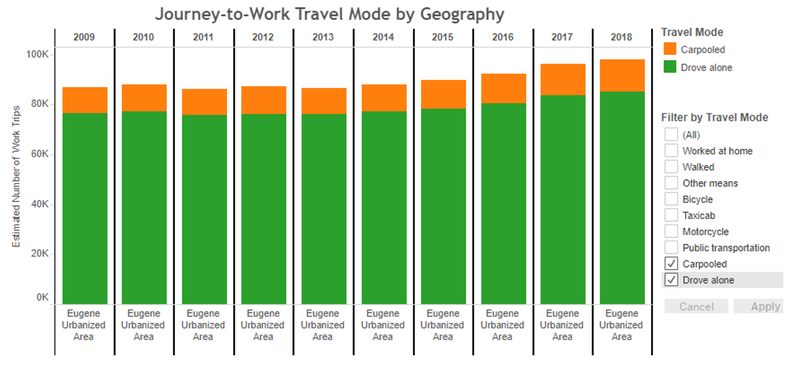 Því er fróðlegt að skoða hvaða breytingar hafa orðið á ferðavenjum á Eugenesvæðinu á tímabilinu 2009-2018. Rétt er að hafa í huga að á þessu tímabili fjölgaði íbúum á svæðinu um 6%.