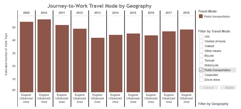 Hér má sjá þróun á fjölda þeirra sem nota almenningssamgöngur til vinnu á svæðinu: