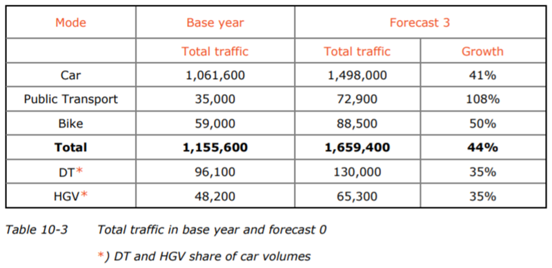 Gerðar voru umferðarspár fyrir 2030 og 2040 annars vegar með og hins vegar án breyttra ferðavenja. Umferðarspárnar voru gerðar með reiknilíkani sem aðeins gat spáð fyrir um bílaumferð. Slík reiknilíkön þóttu trúverðug til að spá fyrir um bílaumferð, á meðan ekki var reiknað með því að hlutur ferða með strætó myndi breytast neitt að ráði í framtíðinni. Þegar stefnt er að jafn miklum breytingum á ferðavenjum hefði átt að búa til samgöngulíkan sem spáir fyrir um umferð allra ferðamáta, áður en svæðisskipulagið var afgreitt, svokallað modal split-reiknilíkan.