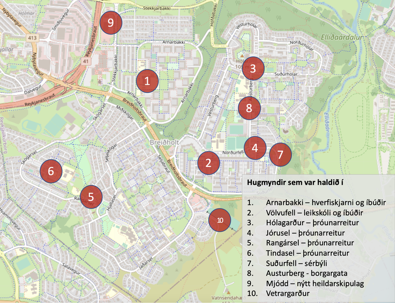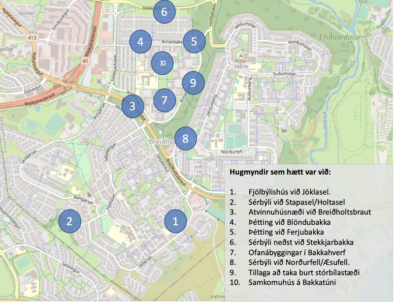 Sett var fram hugmyndir um að þétta byggð í Blöndubakka í Neðra-Breiðholti. Þeim var upprunalega ágætlega tekið í rýnihópum en meiri efasemdir vöknuðu á síðari stigum og var ákveðið að hætta við þessi þéttingaráform. Svipaðar hugmyndir voru við Ferjubakka en niðurstaðan varð sú sama og ákveðið var að halda svæðinu sem opnu svæði.