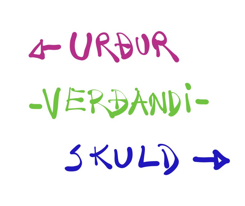 Skapanornir í norrænni goðafræði heita Urður, Verðandi og Skuld. Með Urði er vísað til fortíðar, Verðandi nútíðar en Skuld horfir til framtíðar. Urður þekkir veðrið í gær og Verðandi veður dagsins en Skuld spáir í framtíðina sem er ókomin en hennar er vænst í trú og von um betri tíð með blóm í haga, eða þannig. Sumir veðurfræðingar skulda okkur framtíð.