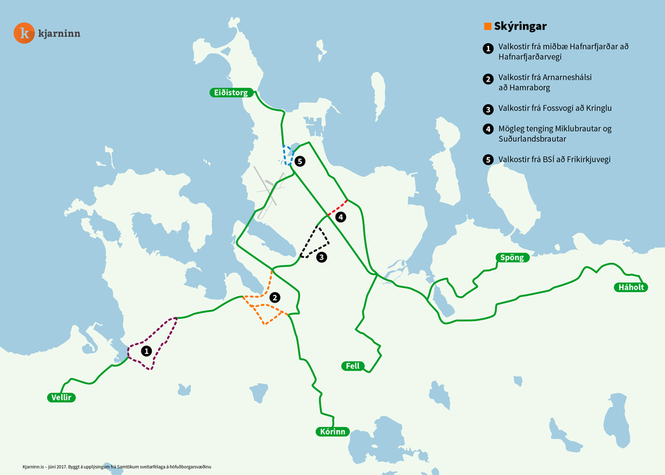 Út frá þeim valkostum sem lagðir voru til hafa leiðirnar verið lagðar. Aðalskipulag höfuðborgarsvæðisins til ársins 2040 verður að endingu uppfært með þetta í huga og framkvæmdir hefjast hefjast á næsta ári.