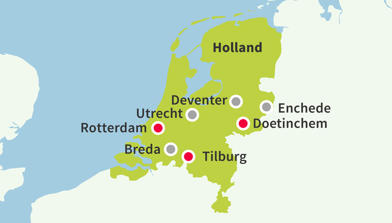 Íslenska liðið leikur alls þrjá leiki í riðlakeppninni og aldrei á sama stað. Leikir Íslands í riðlakeppninni eru þó allir í sunnanverðu Hollandi og vegalengdirnar á milli takmarkaðar. Keppnisstaðir Íslands í riðlakeppninni eru merktir með rauðu á kortið hér að ofan. Íslenskir stuðningsmenn þurfa þess vegna að ferðast á milli borga til þess að styðja okkar konur. Ísland leikur í C-riðli. Þar leika einnig Frakkland, Austurríki og Sviss.
