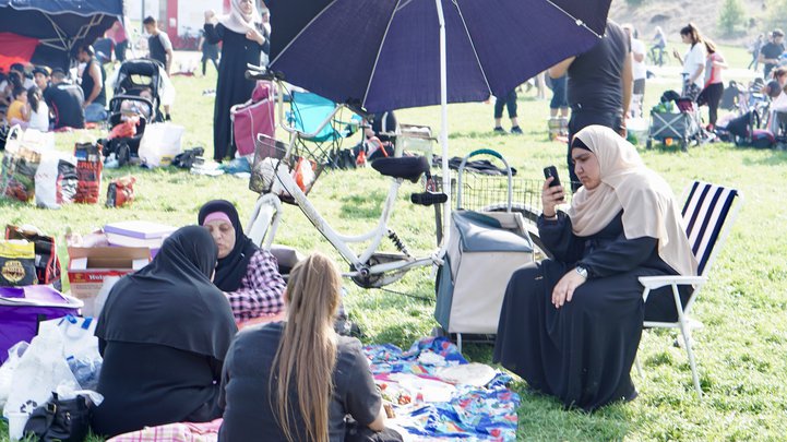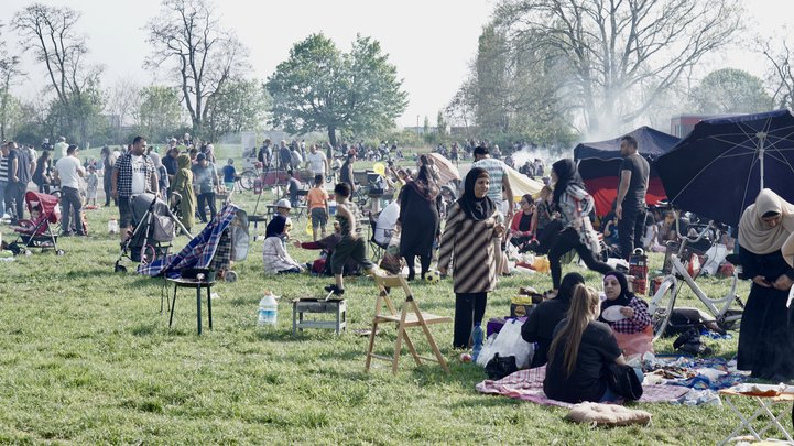 Hér er fýrað upp í grillinu. Oft má sjá tyrkneskar og arabískar stórfjölskyldur grilla og hita te í kötlum meðan börnin leika.