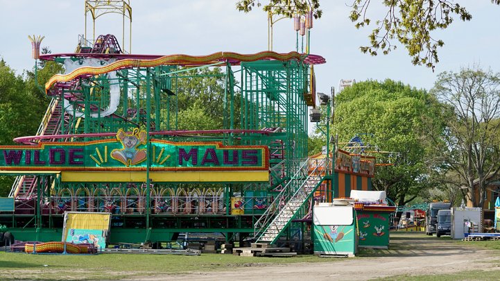Fátt er eins draugalegt eins og tómt tívolí en á sumrin fara flökkutívolí á milli hverfa í Berlín og misjafnt eftir hverfum hvenær þau koma . Í byrjun maí er alltaf tívolí í Hasenheide (Héraheiðinni), garðinum við hlið Tempelhof, enda mikið er um dýrðir og líflegar óeirðir þann 1. maí á þessu svæði. Í augnablikinu er engin starfsemi og tívolíið bíður eftir að stuðið hefjist.