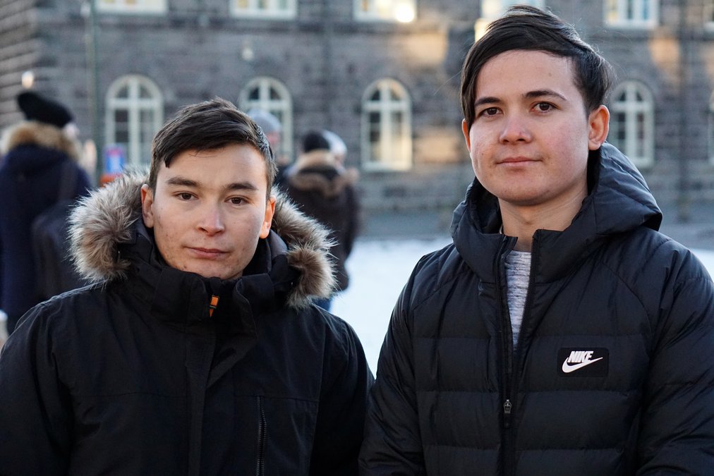 Í ræðuhöldunum var ekki seinna vænna að taka einhverja mennina tali. Við hittum vin okkar, Ali Rasouli, sem við höfum áður tekið viðtal við og býr nú til frambúðar í Kópavogi ásamt eiginkonu og syni. Hann sagði mikilvægt að Íslendingar sýndu flóttafólkinu stuðning og kynnti okkur fyrir tveimur vinum sínum frá Afganistan, þeim Mohammad Mohammadi og Ali Yaghobi.