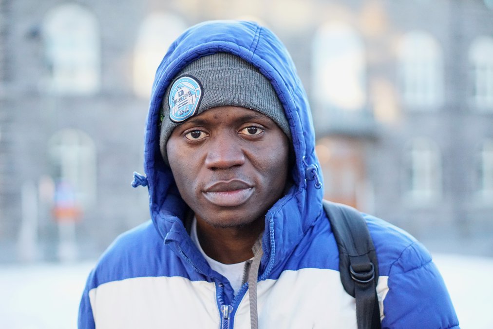 Annar flóttamaður varð á vegi okkar en hann kallar sig Check Elvis og er frá Suður Kamerún í Afríku. Hann hefur verið á flótta síðan í nóvember 2016. Hann arkaði á Austurvöll til að mótmæla brottvísunum og Dyflinnarreglugerðinni. Hann álítur að kerfið sé ekki manneskjulegt og að flóttafólk hafi ekki rými til að útskýra nægilega vel þær ástæður sem liggja að baki því að það flúði til Íslands.
