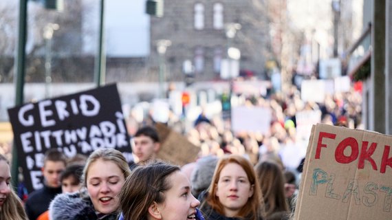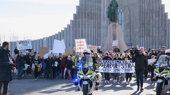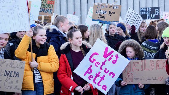 Ungmenni hvaðanæva að úr heiminum mótmæltu aðgerðum stjórnvalda í loftslagsmálum. Íslensk börn og unglingar létu sig ekki vanta en mörg hundruð marseruðu frá Hallgrímskirkju niður Skólavörðustíg, Bankastræti, Austurstræti og niður á Austurvöll þar sem hópurinn safnaðist saman.