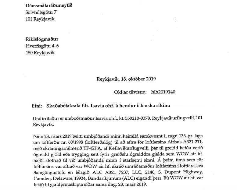 Þegar WOW air fór svo loks í þrot í lok mars var skuld félagsins við Isavia um tveir milljarðar króna. Vélin sem var kyrrsett fyrir greiðslu þeirrar skuldar, og WOW air hafði haft til umráða, var hins vegar ekki í eigu WOW air heldur hafði félagið leigt hana. Eigandinn var ALC og hann hafði engan áhuga á því að borga skuld WOW air til að losa vélina sína.