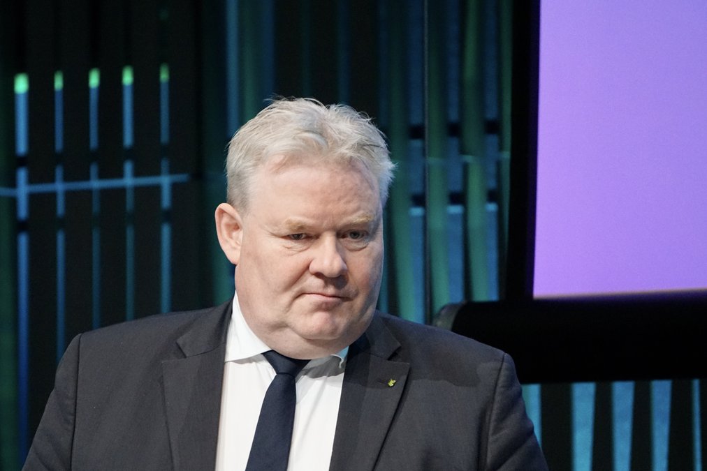 Hann heldur áfram, rjóður í kinnum, og ákveðnin eykst í röddinni frekar en hitt: „Þetta er tvíþætt áskorun; heilbrigðisvá og efnahagsvandi. Og til að takast á við þessa áskorun þarf að vinna saman.“