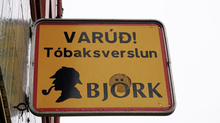 Oft hefur verið líflegra um að litast í Bankastrætinu. Við horfum á eftir einni manneskju hraða sér eitthvert út í bláinn. Tóbaksbúðin Björk er þó opin á þessum síðustu og verstu. Sýnilega er tilviljunarkennt hvaða búðir eru opnar og þrátt fyrir allt og allt, viðvaranir lækna og heilbrigðisyfirvalda þess efnis að tóbak auki líkurnar á hættulegum veikindum, þá er vinalegt að sjá opna búð.