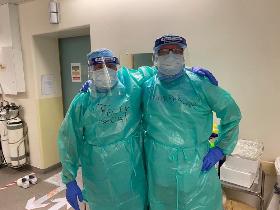 Það er að ákveðnu leyti flókið að sinna sjúklingum með COVID-19. Til þess þarf fleiri starfsmenn en oftast undir hefðbundnum kringumstæðum á gjörgæslunni. „Sjúkdómurinn setur það starfsfólk sem sinnir sjúklingum í hættu og þess vegna þarf það að vera í miklum hlífðarbúnaði,“ útskýrir Sigurbergur. Það er með sérstaka grímu fyrir andlitinu eða gleraugu, í hlífðarslopp og með hanska. „Þessi búnaður gerir það að verkum að öll vinna í kringum sjúklinginn verður þyngri og erfiðari og skipta þarf um áhöfn oftar.“