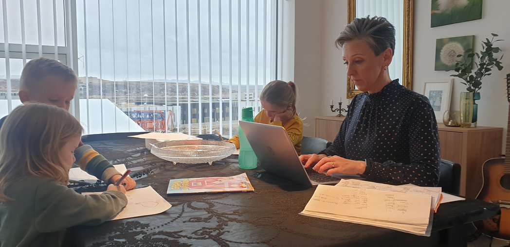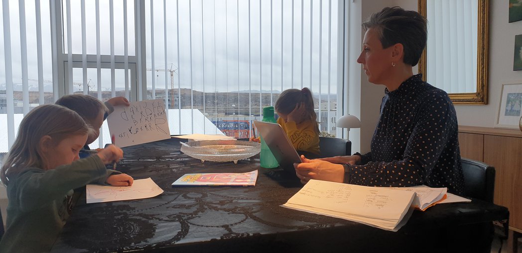 Heima fyrir hafi hún svo sjálf verið að berjast við að halda góðri rútínu hjá öllum og nota þá glugga sem gáfust til að sinna vinnunni inni á milli. Sjö ára dóttir hennar var stutt í skólanum á hverjum degi og var svo með heilmikið heimanám alla daga. Og tvíburarnir bara í leikskólanum annan hvern dag. „Maðurinn minn þurfti stundum að taka frí frá sinni vinnu svo að þetta gengi allt upp. Þá fór þetta alveg að ganga vel. En það eru auðvitað allir í svipaðri stöðu og ég er ekkert frábrugðin öðrum.“