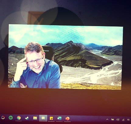Halldór kennir fyrst og fremst sögu en þessa önn er hann einnig með áfanga í áhugaljósmyndun og hluta úr tölvuáfanga. Í ljósmyndaáfanganum bað hann nemendur sína að mynda eitthvað í tengslum við fjarnámið. Margrét Linda Kristjánsdóttir, einn nemenda hans, ákvað að myndefnið skyldi verða kennarinn sjálfur og má mynd hennar sjá hér efst í greininni.