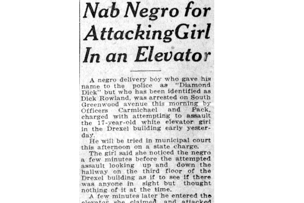 Þann 30. maí árið 1921 var svartur piltur á táningsaldri, Dick Rowland, í vinnunni í miðborg Tulsa en þurfti að fara á salernið í öðru húsi þar sem vinnuveitandi hans hafði ekki klósett fyrir svarta líkt og reglur gerðu ráð fyrir. Hann fór því í Drexel-bygginguna og þar inn í lyftu. Lyftuvörðurinn Sarah Page, sem var einnig unglingur en hvít á hörund, er sögð hafa sakað Rowland um áreitni í lyftunni. Sumar fréttir þess tíma segja að hún hafi sakað hann um kynferðisofbeldi og slógu fjölmiðlar því upp á forsíðu. Lögreglan var kölluð til og að morgni 31. maí handtók hún Rowland.