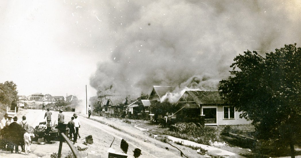Hann er Donald Trump. Borgin er Tulsa í Oklahoma-ríki. Fjöldamorðið, sem í áratugi var talað um sem „kynnþáttaóeirðir“, hófst að kvöldi 31. maí árið 1921. Um ódæðið, sem er eitt það mannskæðasta í sögu ofbeldis gegn svörtum í Bandaríkjunum, hefur ekki verið mikið fjallað í sögubókum og fjölmiðlum.
