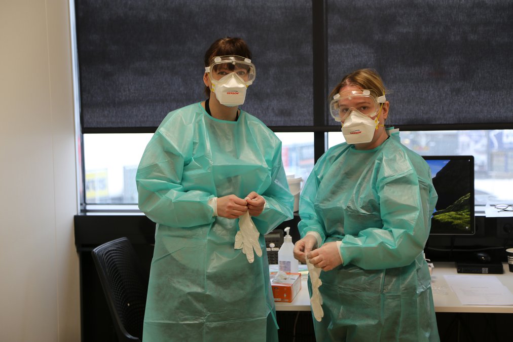 Um tíu þúsund ferðamenn hafa verið skimaðir fyrir veirunni við komuna til landsins á rúmri viku. Hjúkrunarfræðingar frá heilsugæslunni afla sýnanna á Keflavíkurflugvelli en þeim er svo ekið til Íslenskrar erfðagreiningar sem greinir þau.