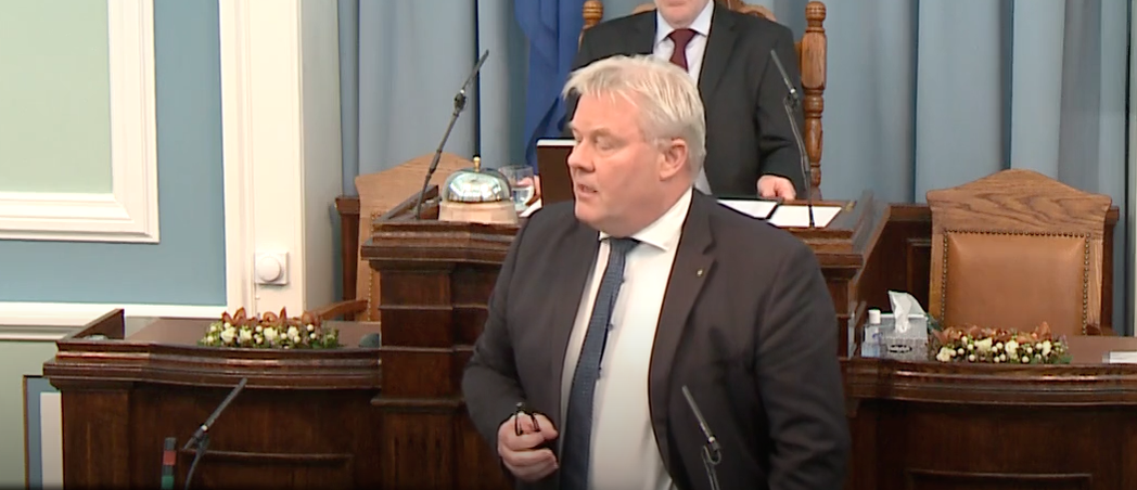 Ræðan hófst með eftirfarandi hætti: „Virðulegi forseti. Formaður Miðflokksins fór í ræðu sinni yfir að stefna ríkisstjórnarinnar væri stefna Vinstri grænna. Formaður Samfylkingarinnar kom svo upp og sagði að þessi stefna væri hægri stefna Sjálfstæðisflokksins. Svarið liggur auðvitað í augum uppi: Stefna þessarar ríkisstjórnar er stefna Framsóknarflokksins.“ Hann uppskar hlátur í þingsal og gott veður á samfélagsmiðlum.
