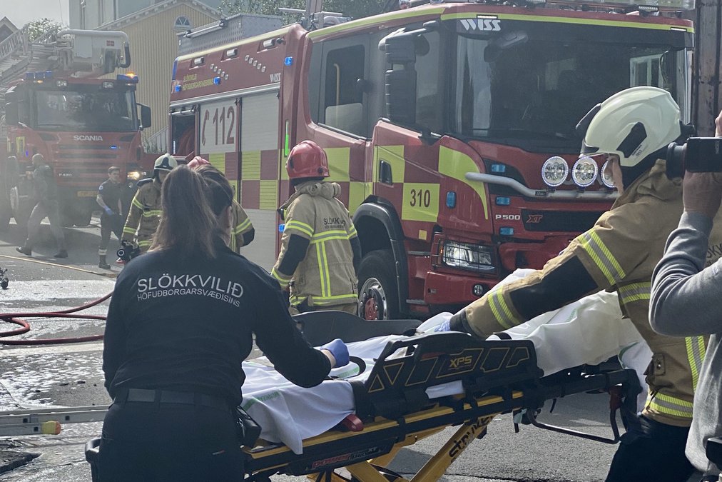Sjúkraflutninga- og slökkviliðsmönnum tókst að bjarga karlmanni sem bjó í næsta herbergi við hann út um glugga. Karlmaður sem bjó á annarri hæðinni, þeirri hæð sem eldurinn kviknaði, hlaut þriðja stigs brunasár á stórum hluta líkamans og gekkst vikurnar á eftir undir nokkrar aðgerðir. Hann var dögum saman á gjörgæsludeild og ekki útskrifaður af Landspítalnum fyrr en eftir miðjan ágúst. Maðurinn, sem er á sextugsaldri, á frekari aðgerðir fyrir höndum.
