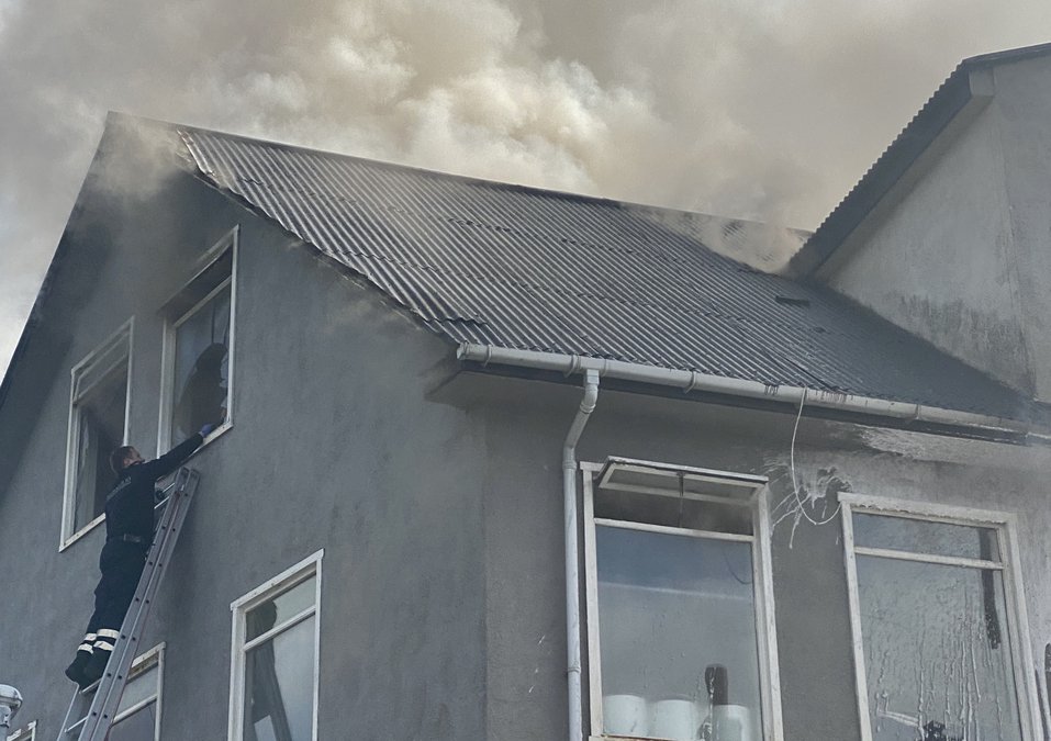 Enn sést maður í glugga á efstu hæðinni á norðurhlið hússins. Sigurjón snýr sér að því með aðstoð lögreglumanns að losa stiga af eina dælubílnum sem á þessum tímapunkti er kominn á vettvang. Stiginn er þungur og að lyfta honum og koma fyrir við húsvegginn er tveggja manna verk. Slökkviliðsmennirnir þrír sem komu á dælubílnum eru þegar farnir að sinna slökkvi- og björgunarstarfi. „Ég sá manninn þarna í glugganum og hljóp upp stigann til hans,“ rifjar Sigurjón upp. Hann var búinn að brjóta lítið gat á gluggann en brjóta þurfti meira svo að hann kæmist út og Sigurjón aðstoðaði hann við það. „Ég gat talað við hann, leiðbeint honum. Það var mjög mikill og þykkur reykur inni í herberginu hjá honum og það var skelfilegt fyrir hann að anda honum að sér.“