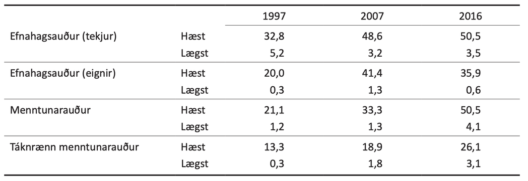 Berglind Rós segir að í greininni séu þau að skilgreina stétt út frá valdahugtakinu. „Bæði erum við að skoða dreifingu foreldra út frá efnahag og svo framhaldsgráðum út háskóla. Við komust að því að það er til dæmis ekki nóg að skoða bara háskólagráðu vegna þess að 60 prósent foreldra á höfuðborgarsvæðinu eru með háskólagráðu. Á 20 ára tímabili hefur þetta hlutfall tvöfaldast,“ segir hún en þarna er Berglind Rós að tala um ákveðna gráðuvæðingu sem hefur verið til umræðu í mörg ár.