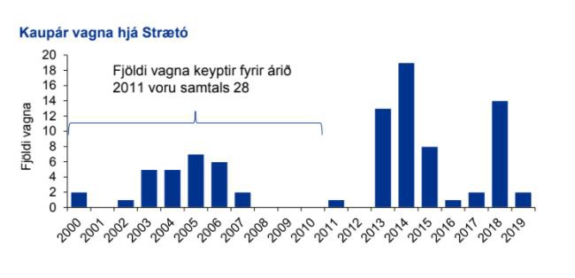 Mikil uppsöfnuð endurnýjunarþörf er til staðar, en Strætó á tvo vagna sem voru keyptir inn á aldamótaárinu 2000. Þeir eru ekki notaðir mikið, að sögn framkvæmdastjórans. Alls 28 vagnar af alls 88 í flotanum voru keyptir inn fyrir árið 2010 og meðalaldur þeirra er um 16 ár.