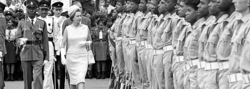 „Samveldið er ekkert í líkingu við heimsveldi fortíðarinnar,“ sagði Elísabet í jólaávarpi sínu, ári eftir að hún varð drottning. Samveldið hafði verið stofnað formlega árið 1949, á tíma þar sem nýlendur Breta í Asíu voru hver af annarri að brjótast til sjálfstæðis. En það byggði á grunni heimsveldisins, sama hvað orðum ungrar Elísabetar drottningar líður. Samveldið hafði þá yfirlýstu stefnu að mennta og leiða nýlendurnar í átt að sjálfstjórn þótt það ætti einnig, leynt eða ljóst, að tryggja ítök og völd Breta um heimsbyggðina. En það sem byggt var á yfirgangi og ofbeldi gat ef til vill ekki endað öðruvísi en í blóðbaði.