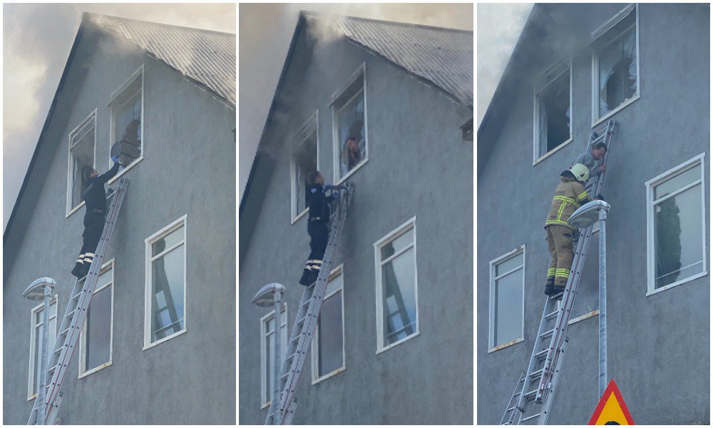 „Þrátt fyrir að kviknað væri í húsinu þá hafi konan ekki viljað fara úr því?“ heldur Stefán áfram að spyrja. Maðurinn segist ekki vera viss um alla atburðarásina en að hann hafi séð lögregluna draga hana út úr íbúðinni.