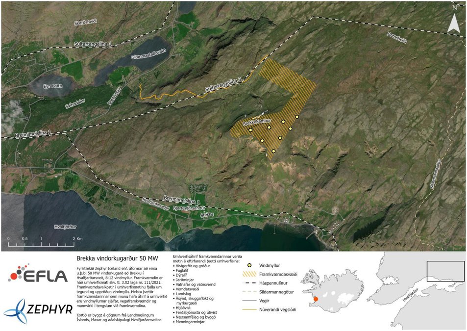 Fyrirtækið Zephyr Iceland, sem er að stærstum hluta í eigu norska fyrirtækisins Zephyr AS, áformar að reisa 50 MW vindorkuver á Brekkukambi í landi jarðarinnar Brekku í Hvalfjarðarsveit. Þótt orðið „kambur“ láti ekki mikið yfir sér er þetta fjall, 647 metrar yfir sjávarmáli þar sem það er hæst, það hæsta á allri Hvalfjarðarströndinni. Á því vill Zephyr reisa 8-12 vindmyllur sem hver um sig yrði tæplega 250 metra há, sem jafnast á við rúmlega þrefalda hæð Hallgrímskirkjuturns.