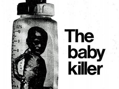Upp komst um aðferðir Nestlé á fyrstu árum áttunda áratugarins og breytti skýrsla Mike Muller, verkfræðings og sérfræðings í málefnum þróunarlanda, sem kom út árið 1974, miklu. Skýrslan hét Barnamorðinginn (e. Baby Killer) og byggði á rannsókn á því hvernig stórfyrirtæki beindi spjótum sínum að fátækum konum með þeim afleiðingum að brjóstagjöf dróst saman sem aftur leiddi til þess að ungbörn létust. „Börn í þriðja heiminum eru að deyja vegna þess að mæður þeirra gefa þeim pela með vestrænni þurrmjólk,“ sagði í inngangi skýrslunnar. „Mörg þeirra sem lifa af eru vannærð og berskjölduð fyrir sjúkdómum svo þau þroskast ekki eðlilega.“