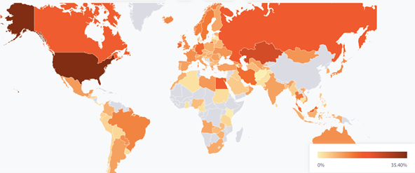 Vísindamenn við Cambridge háskóla hafa útbúið kort af staðsetningu Bitcoin náma. Í fræðigrein sem birtist í vísindatímaritinu Joule fyrr á þessu ári er kortið nýtt til að áætla orkublöndu og kolefnisfótspor Bitcoin netverksins.