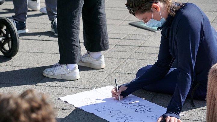 Ungt fólk hefur haldið svokallað loftslagsverkfall á Austurvelli í hádeginu á föstudögum í yfir tvö ár. Tinna segir að það sé ekki ákjósanleg staða að ungt fólk taki sér frí eða skrópi í skóla eða vinnu til að mótmæla í svona langan tíma. „En okkur líður þannig að við þurfum að gera þetta. Við viljum sýna að okkur er annt um þetta vandamál og að þetta sé ekki eitthvað sem hefur horfið úr huga ungs fólks þrátt fyrir að það sé margt annað í gangi. Þetta veldur sífelldum kvíða og áhyggjum.“