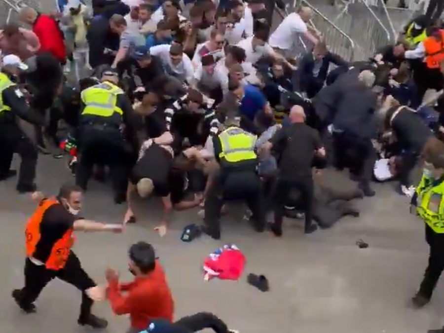 Vegna COVID-19 var úrslitaleikurinn ekki sýndur á risaskjám um alla London eins og venjan er með stórviðburði sem þessa. Það þrengdi þá kosti sem stuðningsmenn höfðu til að koma saman. Þeir þyrptust á barina í kringum Wembley – miðalausir. Líklega ætluðu þeir flestir að horfa á leikinn þar. Höfðu ekki planað annað. En sumir voru vissulega mættir með ekkert gott í huga. Þeir ætluðu inn. Sama hvað það kostaði.