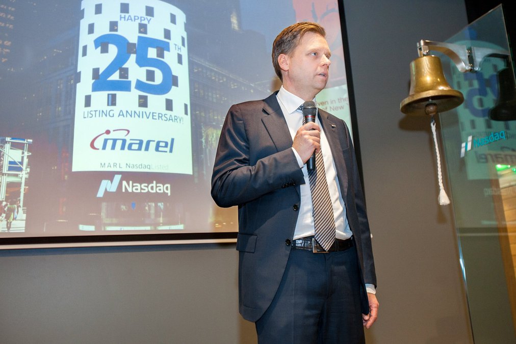 Í tilkynningu til Kauphallar kom fram að Marel myndi grípa til aðgerða til að bæta rekstrarafkomu sína þegar í stað. „Til að lækka kostnað hefur sú erfiða ákvörðun verið tekin að fækka starfsmönnum félagsins um fimm prósent á heimsvísu.“