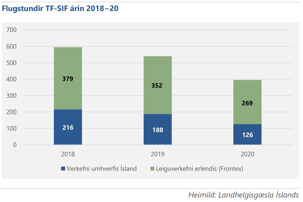 Ríkisendurskoðun gagnrýnir einnig í skýrslu sinni hve mikið flugvél Gæslunnar, TF-SIF, er notuð í leiguverkefnum erlendis, en fram kemur að 62 prósent heildarflugstundavélarinnar hafi verið í leiguverkefnum á erlendri grundu.