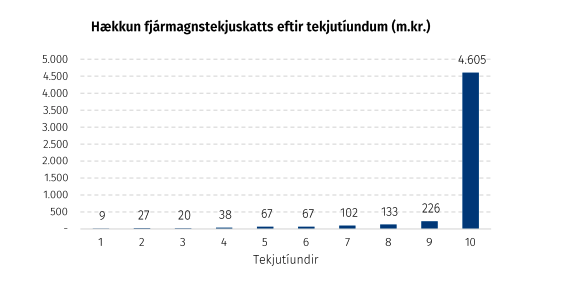 Fjármagnstekjur dreifast mun ójafnar en launatekjur. Þær lendi mun frekar hjá tekjuhæstu hópum landsins, sem eiga mestar eignir.Alls um níu prósent þeirra sem telja fram skattgreiðslur á Íslandi fá yfir höfuð fjármagnstekjur. Fjármagnstekjuskattur er líka 22 prósent, sem er mun lægra hlutfall en greitt er af t.d. launatekjum, þar sem skatthlutfallið er frá 31,45 til 46,25 prósent eftir því hversu háar tekjurnar eru.