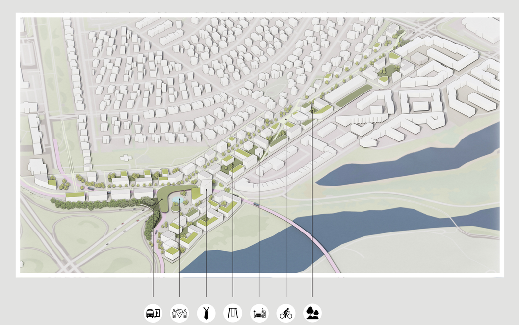 Tillögur teymanna fimm gerðu allar ráð fyrir því að ofan á stokknum og til hliðar við hann gæti orðið talsvert mikið magn bæði íbúðar- og atvinnuhúsnæðis eða umfangsmikil græn svæði, auk tengistöðvar fyrir Borgarlínu, sem á að verða þungamiðja í nýrri Vogabyggð.