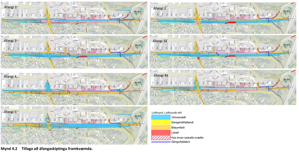 Það er svo ekki fyrr en í fimmta áfanga verksins sem bílaumferð verður komin á báða hluta stokksins á 2+2 vegi. Áætlað er að það verði í janúar 2027, eins og tillögur að framkvæmdaáætlun líta út.