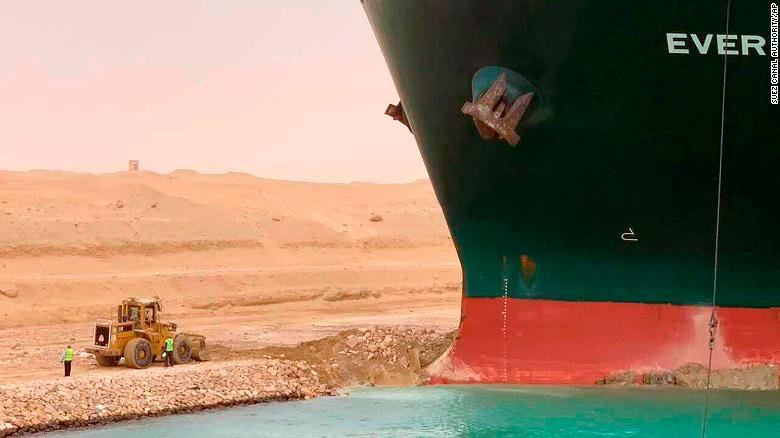 Síðan sat skipið þar pikkfast, þversum í skurðinum, umkringt dráttarbátum sem gerðu sitt besta til að losa það. Vinnuvélar hafa mokað sandi frá stefni skipsins, en ekki hefur enn náðst að koma risanum á flot þegar þetta er skrifað.