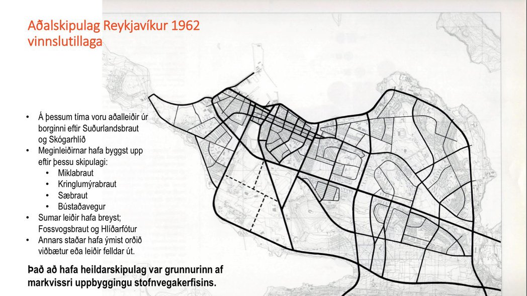 Þar er harmað að ekki hafi verið farið eftir áætlunum sem finna mátti í aðalskipulagi Reykjavíkur frá því á sjöunda áratug síðustu aldar, hraðbrautaskipulagi sem lagði grunninn að víðfemu gatnakerfi borgarsvæðisins og farið var eftir að miklu en þó ekki öllu leyti.