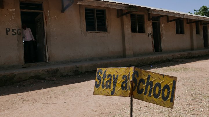 Þetta er lágreist múrsteinshús með bárujárnsþaki og þótt ekkert gler sé í litlu gluggunum er loftið inni þungt. Skólastofurnar eru litlar og virðast enn minni því setið er þétt við hvert einasta borð. Og líka á gólfinu. Setið með stílabækurnar í kjöltunni og námsbókum deilt með sessunautunum.
