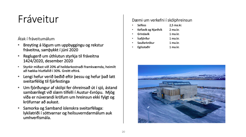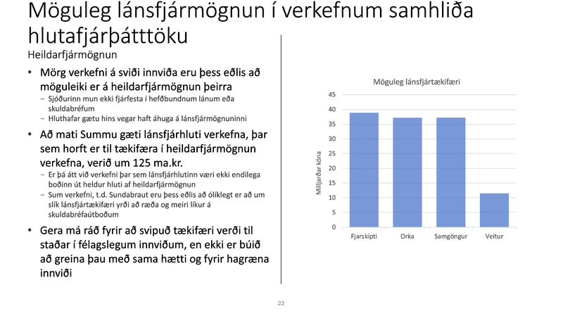Þar er einnig fjallað sértækt um tækifæri í samgönguframkvæmdum, fráveitu, orkuframleiðslu og við ýmiskonar lánsfjármögnun samhliða hlutafjárþátttöku: