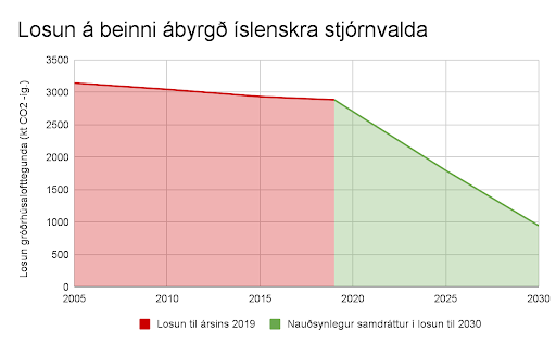 Stjórnvöld hafa nú þegar skuldbundið sig til að takast á við loftslagsbreytingar með aðild að Parísarsáttmálanum. Til að ná markmiðum sáttmálans hafa ríki sett sér sjálfstæð markmið um samdrátt í losun gróðurhúsalofttegunda fram til ársins 2030. Árið 2015 skilaði Ísland, í samfloti með Noregi og aðildarríkjum Evrópusambandsins, inn landsframlagi um 40% samdrátt í losun gróðurhúsalofttegunda árið 2030 miðað við árið 1990. Í árslok 2020 skilaði Evrópusambandið síðan inn nýju markmiði um 55% samdrátt í losun og mun Ísland taka þátt með Evrópusambandinu að því markmiði. Sameiginlegt markmið Evrópusambandsins, Íslands og Noregs þýðir að samanlagt munu þessi lönd draga úr losun um 55% fyrir árið 2030 samanborið við 1990. Innri reglur ríkjanna ákvarða síðan hlutdeild og skyldur hvers ríkis. Enn er óljóst hversu miklum samdrætti í losun Íslandi verði úthlutað samkvæmt nýja 55% markmiðinu.