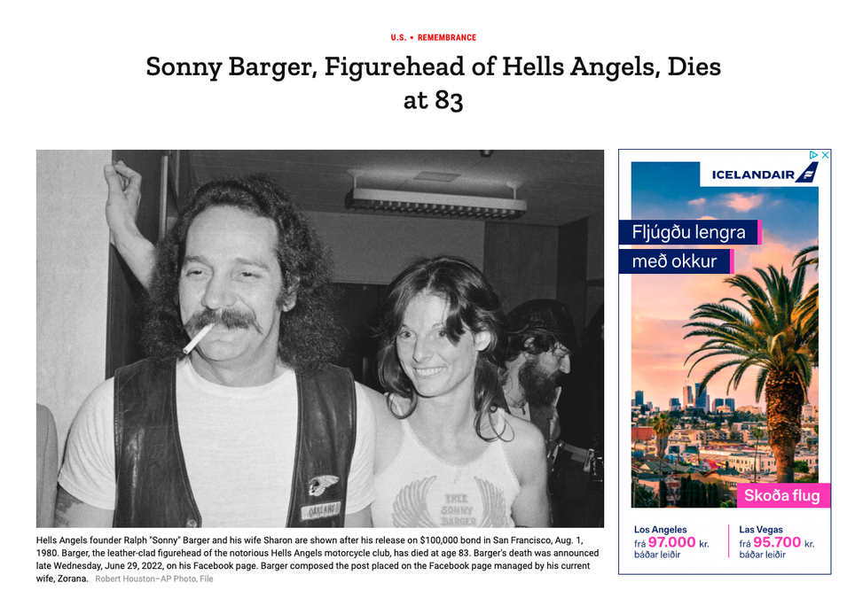 Þetta var ritað á Facebook-síðu Ralph Hubert „Sonny“ Barger, andlits vélhjólaklúbbsins og glæpasamtakanna Hells Angels, eftir andlát hans í lok júní en hann lést 83 ára að aldri eftir stutta baráttu við krabbamein.
